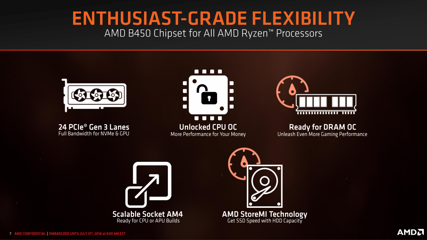 Hari ini (31 Juli 2018), AMD secara resmi merilis chipset kelas midrange baru mereka, yang dinamai B450. Seperti hal-nya X470 ke X370, B450 adalah sebuah chipset ‘refresh’ yang memberikan sedikit peningkatan dan fitur tambahan dari B350, walau spesifikasi IO yang dimiliki B350 dan B450 akan identik. B450 dibuat pada platform AM4 AMD yang akan terus mendapat support hingga tahun 2020 nanti.