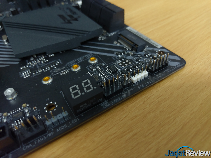 Motherboard ini juga hadir dengan fitur debug LED berupa Post Code. Fitur yang sangat berguna untuk membantu proses troubleshooting.