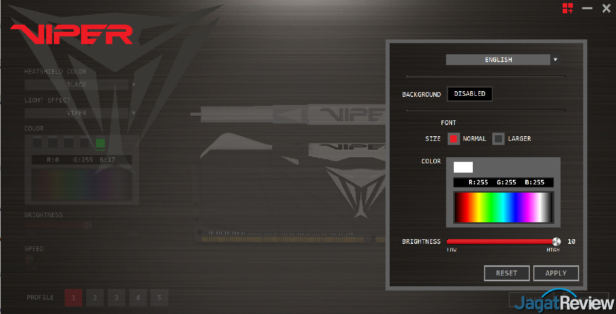 Menghadirkan fitur RGB LED lighting yang terlihat fancy tampaknya tidak akan lengkap jika tidak dilengkapi dengan software pendukung yang mumpuni. Patriot menghadirkan sebuah software yang secara khusus dibuat untuk mengatur lighting di Patriot Viper RGB. Melalui software ini, Anda akan dapat mengatur lighting effect menggunakan preset yang disediakan, mengatur secara manual per LED, kecepatan efek lighting, dan juga tingkat kecerahan LED lighting.