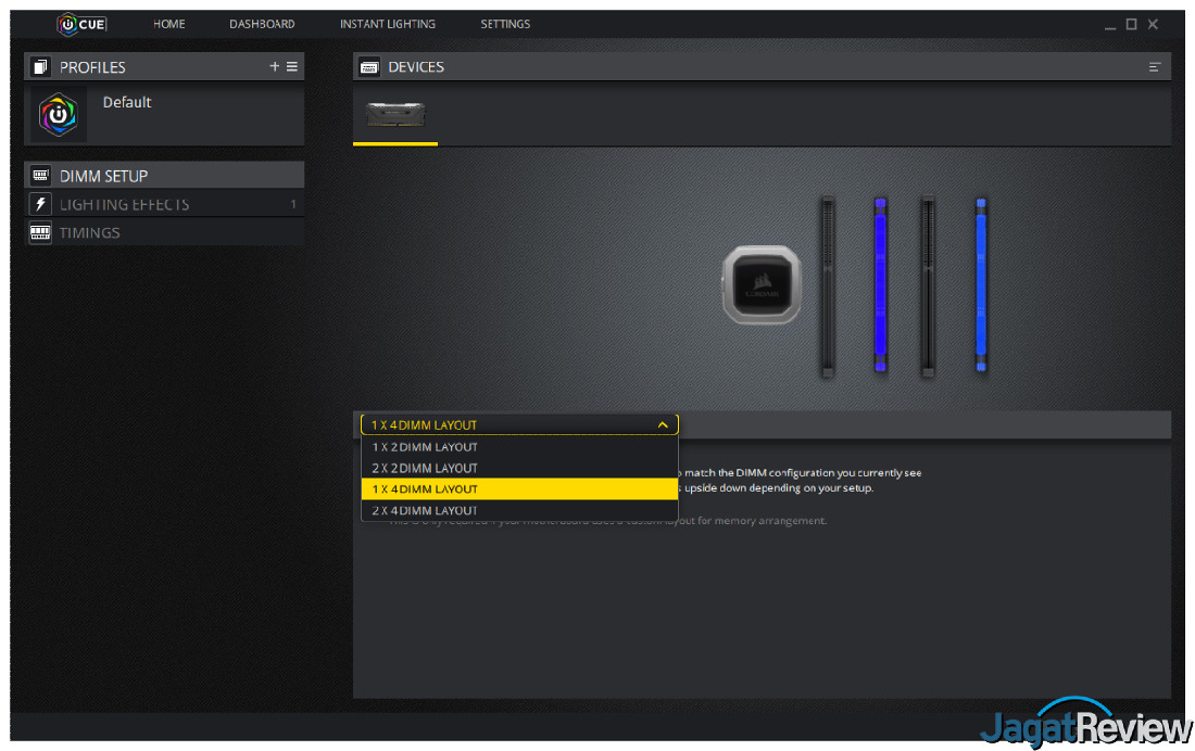 Selanjutnya, menu DIMM Setup merupakan tempat untuk memilih setup sesuai motherboard yang Anda gunakan. Terdapat pilihan untuk motherboard 2 & 4 DIMM dual-channel serta 4 & 8 DIMM quad-channel. Hal ini memungkinkan Anda menyesuaikan posisi RAM dengan efek yang ingin didapatkan.