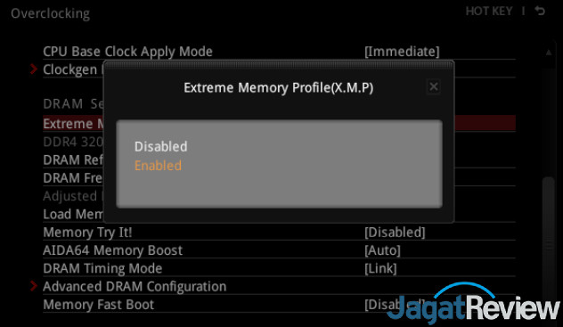 Atau, di motherboard ini, Anda hanya perlu melakukan 1 kali klik pada icon bewarna merah pada menu BIOS bagian atas. Sesuai dengan logonya, icon tersebut memang merupakan tombol untuk mengaktifkan XMP.