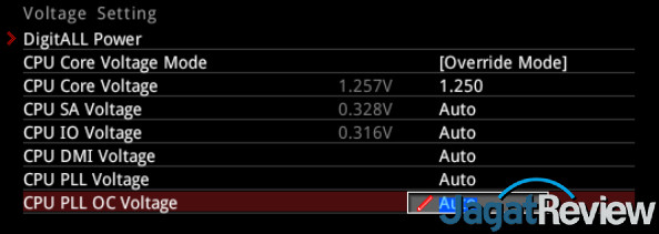 Berikut ini adalah setting CPU dan Voltage yang digunakan selama pengujian: