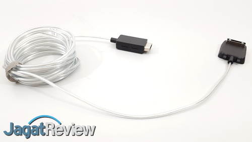 Lalu, bagaimana dengan input untuk monitor ini? Memperbaiki tawaran menarik mereka untuk lini TV QLED mereka sebelumnya, Samsung kembali menghadirkan One Invisible Connector, tetapi dengan desain baru yang lebih baik. Memanfaatkan satu kabel khusus, yang didesain dengan warna yang bisa memudahkan pemilik menyamarkannya di dinding, Samsung menyalurkan data tampilan dan daya ke TV dari control box khusus. Kabel ini memang lebih tebal dari kabel serupa yang digunakan di TV QLED Samsung generasi sebelumnya, tetapi kabel ini juga menyalurkan daya ke TV, berbeda dengan generasi sebelumnya di mana TV memiliki kabel power terpisah dari control box.