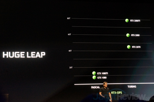 Sebagai perbandingan ke Pascal, GTX 1080 Ti dan bahkan Titan X hanya memiliki <20T RTX-OPS . Titan X memililki sekitar 12T RTX-OPS, dan ini yang membuat NVIDIA menyebut bahwa Turing kurang lebih 6x lebih cepat dari Pascal.