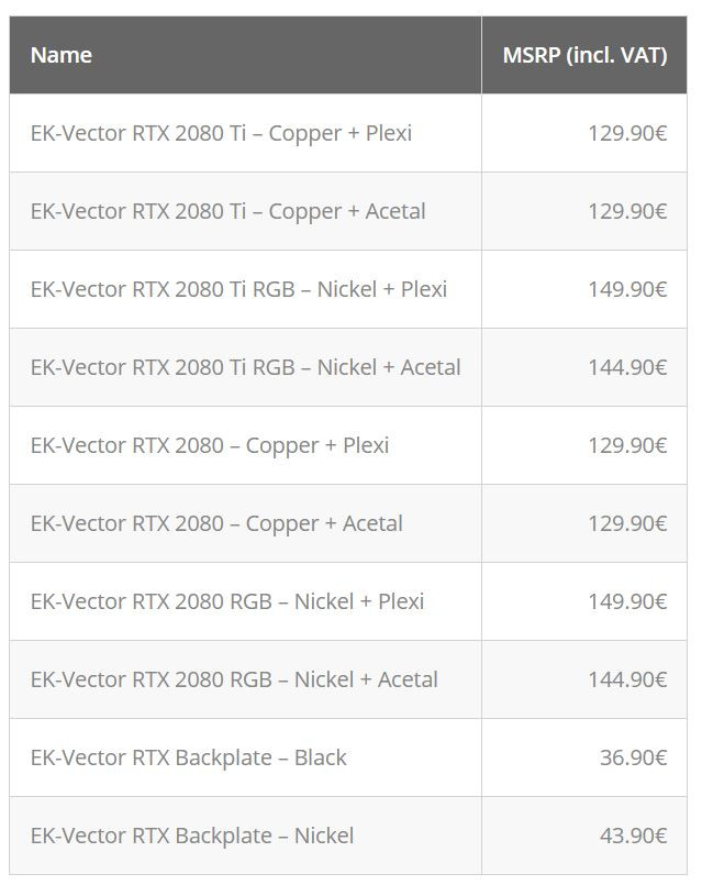 Berikut ini adalah opsi EK Vector RTX 2000 Series yang dapat Anda pilih beserta dengan harganya: