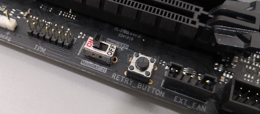 Selain itu juga, motherboard ini memiliki switch MemOK II. MemOK II ini merupakan switch dengan 2 konfigurasi, enable dan disable. Jika Anda menggunakan Enable maka Anda mengizinkan mode safe boot setelah 3x memory retraining hal yang menarik adalah proses retraining yang terjadi ini menggunakan 3 buah profile yang berbeda dan meningkatkan DRAM Voltage secara perlahan. Dan jika diatur ke disable maka Anda akan tidak akan memiliki mode safe boot. Selain switch MemOK II, motherboard ini juga memiliki tombol Retry, yang digunakan untuk memaksa sistem mencoba konfigurasi yang sama.