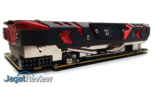 Sebelum membahas pengujian singkat tersebut, kami akan terlebih dahulu memperkenalkan graphics card dari Power Color tersebut! Red Devil RX 590 8GB GDDR5 ini hadir dengan desain sistem pendingin yang sama dengan produk serupa dengan Radeon RX 580. Sistem pendingin tersebut cukup tebal, dengan ketebalan yang membuatnya memakan 3 slot ekspansi di PC, dilengkapi dengan lima buah heatpipe dan dua kipas. Graphics card ini juga dilengkapi dengan backplate.