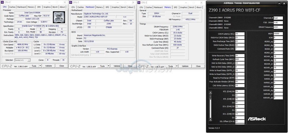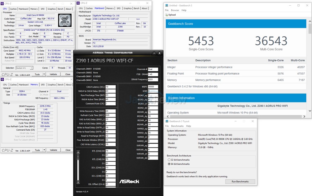 Tentunya, motherboard ini tidak hanya sekedar bisa melakukan booting. Motherboard ini bisa menjalankan benchmark singkat dengan setting DDR4-4500 ini: