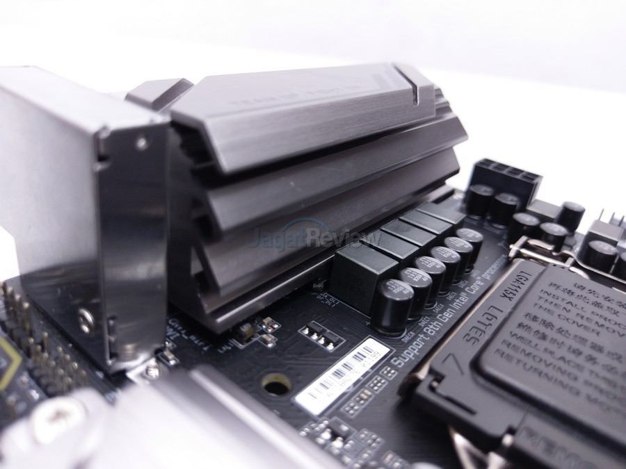 Secara teori, motherboard ini dapat memberikan pasokan daya sebesar 240A maksimal kepada prosesor yang digunakan. Namun, sebagai catatan, motherboard ini juga memiliki 1 buah phase VRM yang dibiarkan terbuka tanpa adanya heatsink. Hal ini membaut kami sedikit khawatir akan motherboard ini.