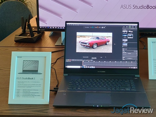 Beralih ke ruangan yang berbeda, ASUS menampilkan sebuah laptop yang juga menarik, walaupun bukan di luar segmen gaming. Laptop tersebut disebut sebagai StudioBook S W700. ASUS menyebutkan bahwa laptop tersebut ditujukan untuk kebutuhan kalangan content creator, serta pekerja kreatif seperti desainer, arsitek, dan lain sebagainya. Walaupun berukuran ringkas, laptop ini adalah sebuah mobile workstation, dengan opsi prosesor Xeon E-2176M serta Quadro P3200 6GB.