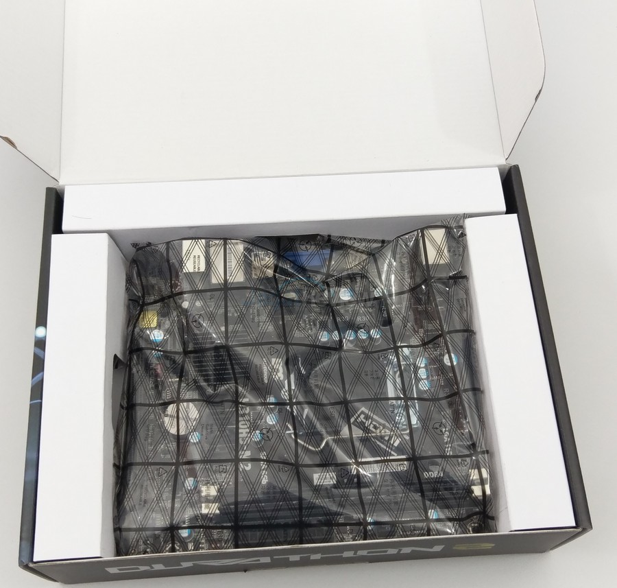 Kami membuka box motherboard ECS H310H5-M2. Terlihat motherboard ini datang di dalam anti-static bag dan dilindungi dengan karton putih pada sisi-sisi nya.