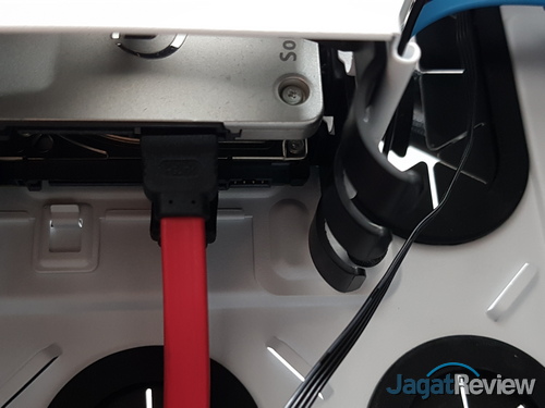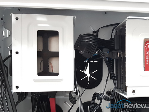 Sebagai catatan, secara keseluruhan tray storage 2.5″ Crystal 280X RGB sebenarnya bisa menampung 3 buah storage. Namun, karena motherboard yang kami gunakan hanya bisa menampung 4 storage SATA saja, kami hanya menggunakan 2 dari 3 tempat storage di tray tersebut.
