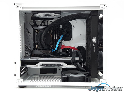 Perakitan sistem ke dalam casing ini memang tidak bisa dikatakan sangat mudah. Ada beberapa langkah tambahan yang mungkin perlu dilakukan, seperti melepas tray storage untuk mempermudah pemasangan backplate sistem pendingin. Namun, secara keseluruhan, desain dari Crystal 280X RGB ini tetap memungkinkan perakitan sistem tanpa banyak masalah, dan masih tergolong cukup mudah.