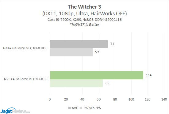 Namun tidak bisa dipungkiri bahwa si pendatang baru yakni GeForce RTX 2060 6GB masih memiliki performa secara overall hampir 1.5x lebih baik dari GTX 1060. Keunggulan performa yang cukup besar ini salah satu efeknya akan membuat GeForce RTX 2060 lebih cocok menangani skenario high-refresh rate gaming pada display 120-144Hz (seperti di ViewSonic XG2401 yang kami pakai), dan performa yang tinggi ini akan membuat GPU RTX 2060 masih sanggup menangani beberapa beban visual ekstra, seperti mengaktifkan resolusi lebih tinggi via downsampling / Dynamic Super Resolution(DSR).