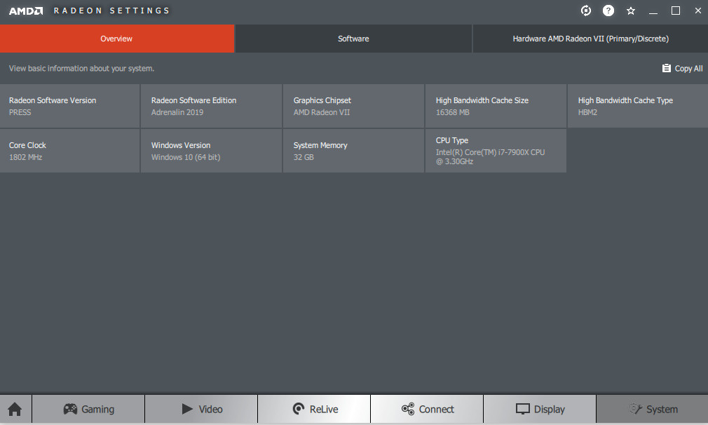 - Radeon VII: Radeon Software, Radeon Settings & Wattman