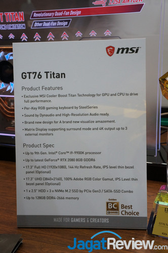 Dengan semua kelebihan ini, nampak wajar jika GT76 mendapat Golden Best Choice Award di Computex 2019.
