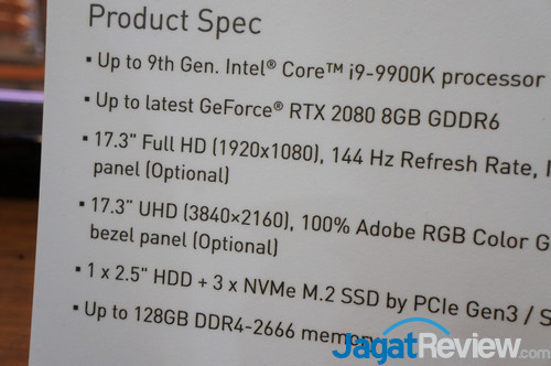 Laptop pertama yang mencuri perhatian adalah MSI GT76 Titan. Apa yang spesial? Selain dilengkapi GPU NVIDIA GeForce RTX 2080 8GB, Prosesor-nya adalah prosesor Desktop.
