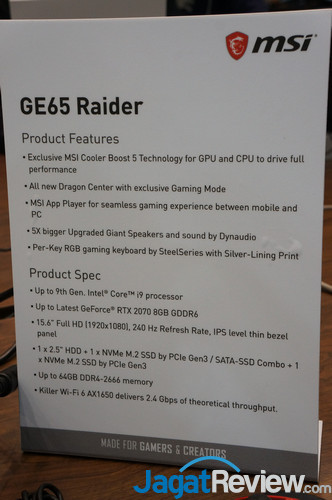 Tentu untuk memanfaatkan layar secepat ini, MSI memberikan spesifikasi serius, yakni sebuah 9th Gen Core i9 Mobile, dan juga GPU GeForce RTX 2070. Tidak tertinggal, MSI memberikan Killer Wi-Fi 6 AX1650 sebagai opsi konektivitas.