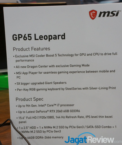 MSI GP65 Leopard datang sebagai solusi gaming cost-effective, yang masih diberikan prosesor 9th Gen Core i9, dan juga GPU kelas GeForce RTX 2060. Jangan salah, laptop dengan harga kelas menengah ini masih dilengkapi layar 144Hz untuk fast-paced gaming.