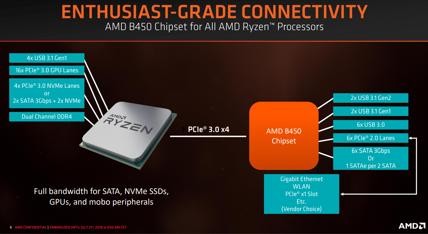 Chipset B450 merupakan chipset kelas menengah yang disiapkan AMD untuk kelas menengah/mid-range. Chipset ini mendukung berbagai prosesor AMD Ryzen untuk PC desktop yang ada saat ini, termasuk CPU Summit Ridge dan Pinnacle Ridge, serta APU Raven Ridge, yang menggunakan soket AMD AM4. Secara umum, chipset ini memiliki fitur serupa dengan B350 dari generasi sebelumnya, dengan tambahan dukungan untuk StoreMi.