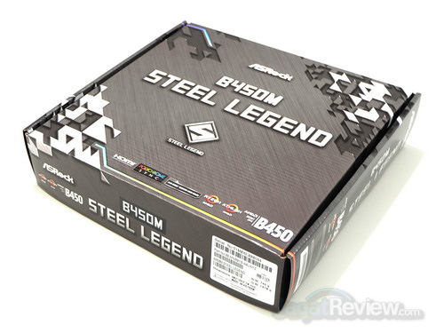 ASRock B450M Steel Legend ini merupakan sebuah motherboard yang diposisikan untuk kelas menengah. Kemasan paket penjualan motherboard ini memiliki ukuran yang tidak terlalu besar, sesuai dengan ukuran kemasan paket penjualan motherboard Micro-ATX di kelas menengah pada umumnya. Untuk corak, kemasan paket penjualan motherboard ini hadir dengan gaya baru, yang merujuk ke nama “Steel Legend”, dengan warna dasar abu-abu yang memiliki pola seperti serat metal serta tulisan dengan warna silver.
