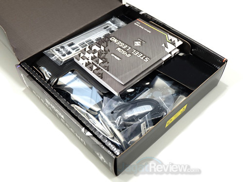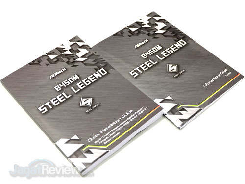 Ketika kemasan dibuka, kita bisa langsung melihat perlengkapan yang disertakan ASRock untuk motherboard ini. Memang, perlengkapan yang disertakan tidak banyak, tetapi menurut kami wajar untuk kelas dari motherboard ini. Berikut ini adalah perlengkapan yang diberikan ASRock untuk B450M Steel Legend: