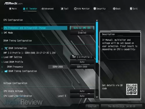 Berikutnya, ada tab “OC Tweaker” di mana kita bisa melakukan tweaking untuk konfigurasi CPU, RAM, dan komponen pemasok daya. Ya, salah satu fungsi utama yang ditawarkan di tab ini adalah untuk overclock, yang memang bisa dilihat dari nama yang diberikan ASRock untuk tab ini. Satu hal yang perlu diperhatikan, pengetahuan yang cukup baik terkait hardware PC dibutuhkan ketika Anda ingin melakukan pengubahan parameter di tab ini. Konfigurasi yang salah bisa berakibat pada ketidakstabilan sistem, atau hal-hal yang ingin dihindari yang lain. Namun, ada beberapa opsi yang terbilang cukup aman diakses, seperti XMP, untuk menjalankan RAM yang digunakan sesuai dengan spesifikasi kecepatan tinggi bawaan pabrikan.