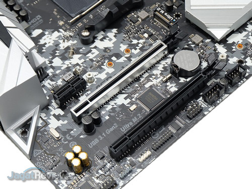 Stainless steel untuk slot PCIe bisa dikatakan merupakan suatu hal menarik di motherboard di kelas harga ini. Tidak banyak motherboard di kelas harga ini yang menawarkannya. ASRock juga terbilang meletakkan komponen-komponen motherboard ini dengan baik.