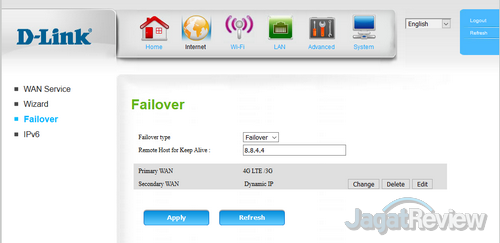 “Multi WAN” dengan memanfaatkan dua sumber Internet, dalam hal ini 3G/4G dan kabel Ethernet ke port WAN, tersedia di router ini. Kita bisa mengatur apakah “Multi WAN” itu akan digunakan sebagai opsi failover atau load sharing. Router akan secara otomatis mengatur agar koneksi utama yang tengah aktif digunakan sebagai koneksi utama, sementara koneksi kedua bisa ditambahkan secara manual untuk “Multi WAN” itu.