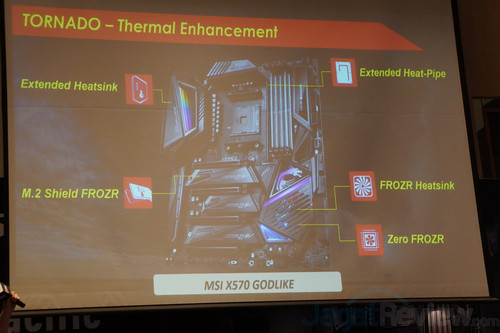 - MSI MEG X570 GODLIKE, ACE, dan PRESTIGE X570 CREATION mendapat Extended Heatpipe, membantu penyebaran panas dari VRM dan chipset dengan heatpipe panjang