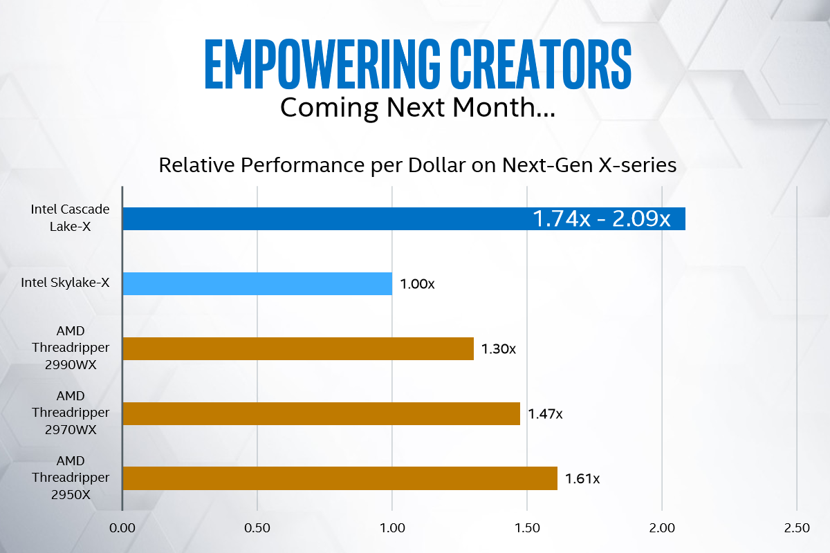 Dengan pricing seperti demikian, ada harapan bahwa Cascade Lake-X akan kembali kompetitif di pasar high-end desktop, melawan Ryzen dan Threadripper yang sejak tahun 2017 menjadi pemimpin pada aspek ‘Performance-per-Dollar’ (atau mungkin lebih tepatnya ‘Cores per Dollar‘).
