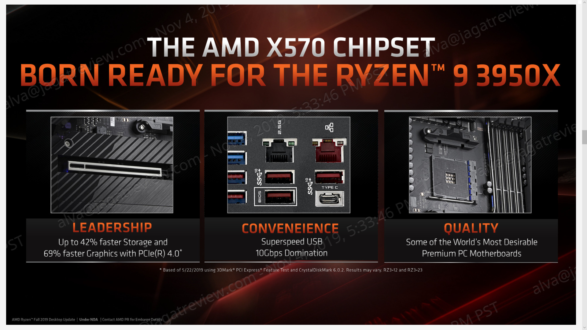 Mengingat 3950X adalah part dengan 16-core, pasti banyak pengguna yang akan mempertimbangkan pemilihan motherboard. AMD sendiri menyebutkan bahwa berbagai board partner mereka sudah mempersiapkan X570 mereka untuk 16-core. Ditambah lagi, AMD menyertakan bahwa opsi ekspansi PCIe Gen 4.0 akan membuat platform X570 memiliki nilai tambah.
