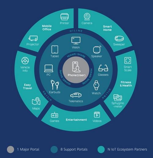 Jadi, 1 perangkat smartphone/pengguna sebagai pusatnya, dengan 8 ekosistem Huawei, untuk menciptakan lingkup IoT (Internet of Things) yang berisikan services tanpa batasan. Semua ini dipadukan dengan Huawei Mobile Services (HMS) sebagai pengendali dan pengoordinasi antar perangkat. Didukung dengan jaringan 5G Huawei, teknologi AI Huawei, dan solusi cloud computing Huawei, semua dirancang untuk bekerja secara harmonis.