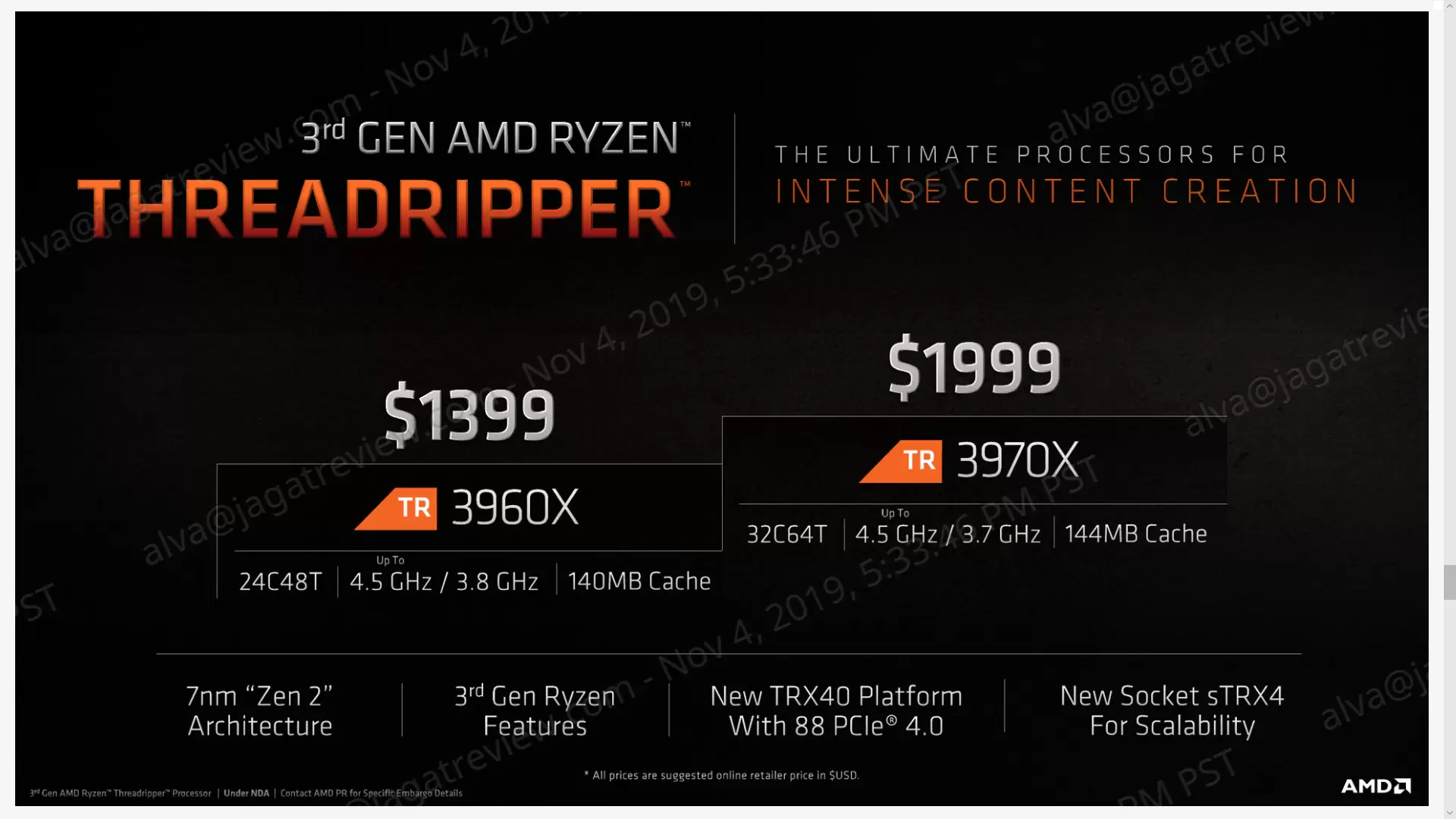 Sneak Preview AMD 3rd Gen Ryzen Threadripper : 3960X 24-Core dan 3970X 32-Core