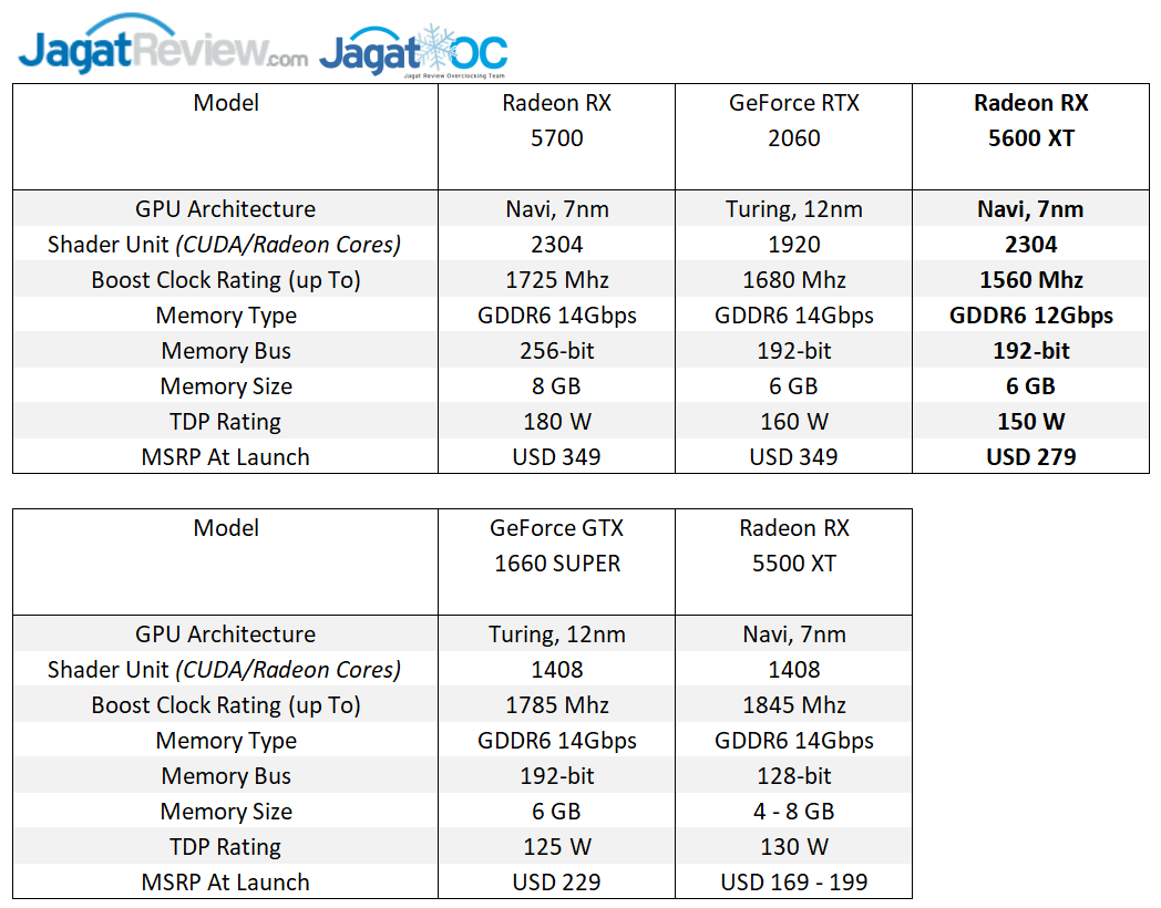 - RAM 6GB nampak terjadi karena RX 5600 memiliki memory bus 192-bit (bukan 256-bit seperti RX 5700)