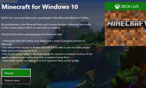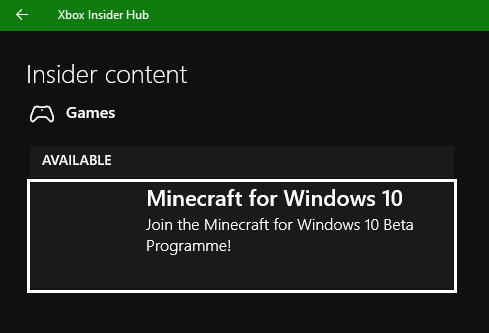 Pada insider Content, pilih ‘Minecraft for Windows 10‘, lalu pilih Join