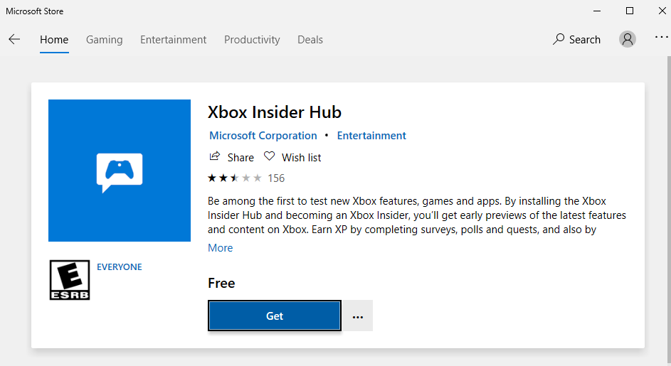 Berikutnya Anda perlu download dan install sebuah app bernama Xbox Insider Hub dari Windows Store.