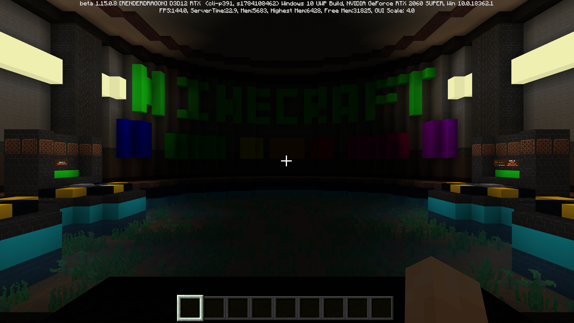 Pada bagian atas layar, umumnya Anda akan menjumpai versi 1.15.08 (versi beta saat artikel ini rilis), dan diikuti line [RENDERDRAGON] D3D12 RTX, yang menunjukkan kalau instalasi dan verifikasi hardware Anda sudah sudah berlangsung dengan benar.