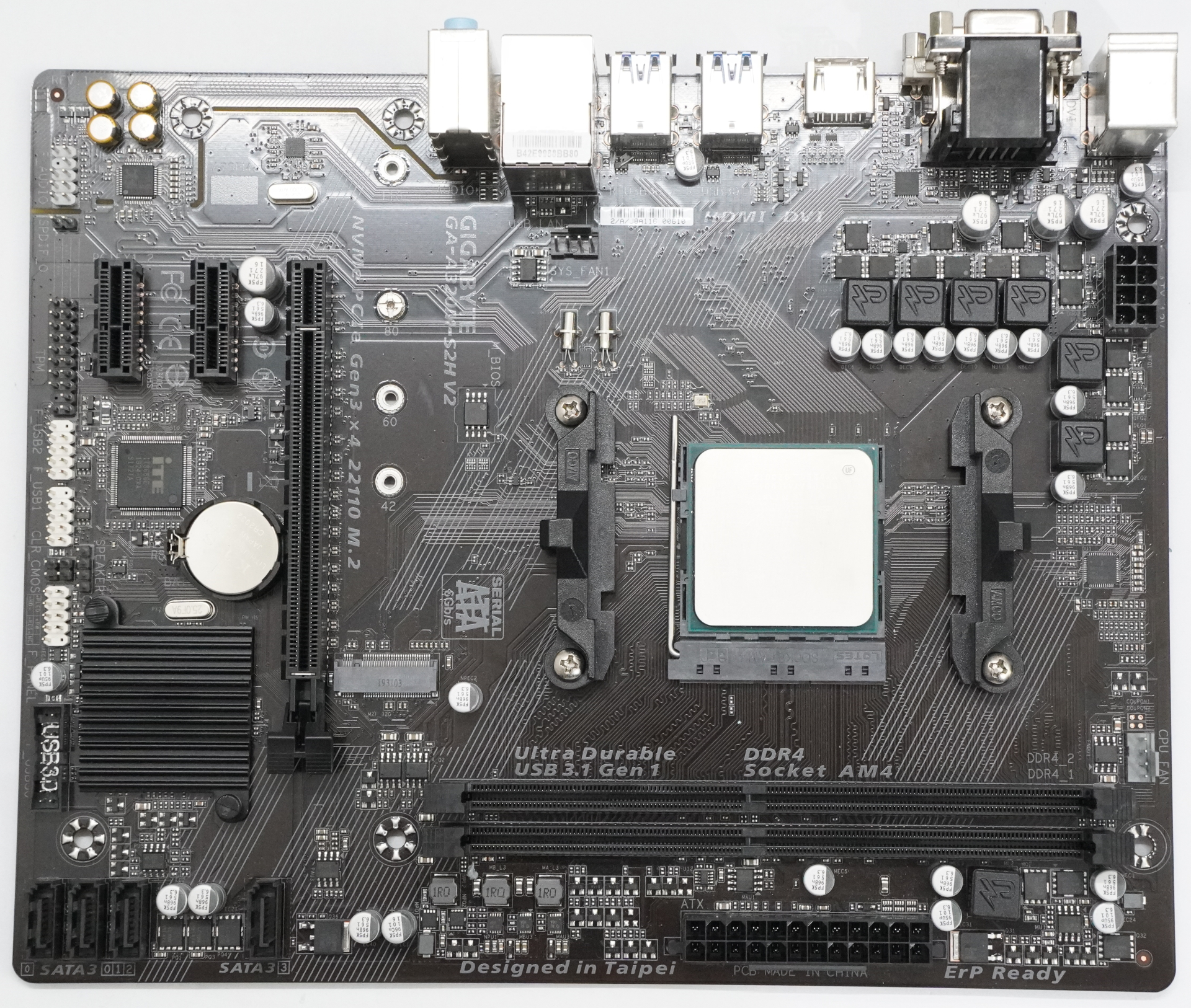 - Motherboard AM4: Gigabyte A320M-S2H V2 (Chipset AMD B350)