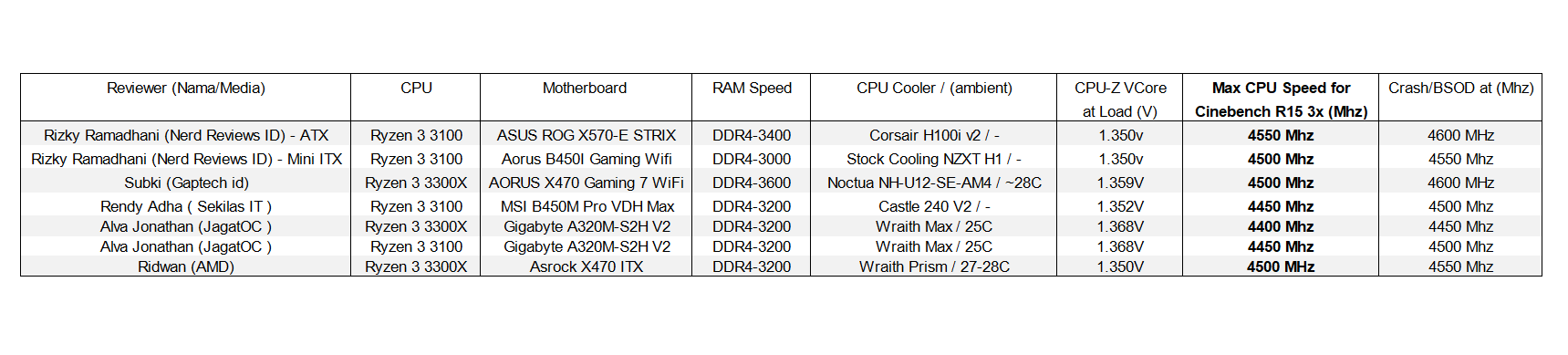 Seperti yang kami ungkapkan di atas, overclocking adalah satu faktor krusial dalam prosesor ini, dimana Ryzen 3 Zen2 7nm ini bisa mencapai clock cukup menarik, di range 4.4 hingga 4.5Ghz pada beberapa sampel yang kami observasi baik milik sendiri maupun miliki beberapa reviewer lain di Indonesia.