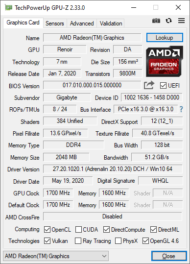 Driver GPU yang tersedia pada saat testing menggunakan driver dari vendor motherboard, versi 27.20.1020.1, driver ini nampak merupakan versi driver untuk OEM yang tidak memiliki AMD Radeon Software panel.