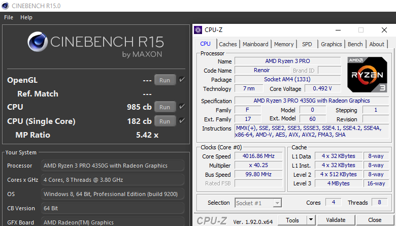 - Skor Cinebench R15 Multi-core dari CPU 4350G mirip dengan Ryzen 3 3100, hampir mencapai 1000 poin berkat 4-core 8-Thread, ini jauh lebih kencang dari 3400G yang umumnya mencatatkan skor 800-900 poin.