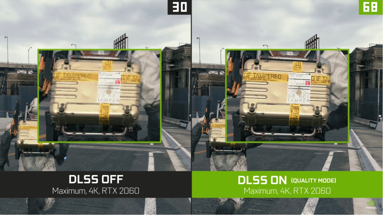 NVIDIA secara spesifik menghadirkan fitur DLSS 2.0 pada Death Stranding versi PC, membuat para pengguna kartu grafis GeForce RTX bisa menikmati gameplay dan kualitas gambar maksimal. Dengan DLSS pada mode Performance, kartu grafis kelas menengah seperti GeForce RTX 2060 masih bisa mendapatkan lebih dari 60 FPS di setting 4K pada Death Stranding.
