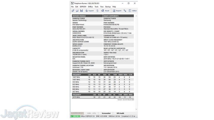 Modul yang kami terima untuk pengujian ini menggunakan IC DRAM Samsung yang dikenal sebagai “B-Die”. Walaupun begitu, belum bisa dipasrikan semua modul RAM ZADAK Spark yang ada di pasaran akan menggunakan chip DRAM yang sama. Hal ini terbilang wajar.