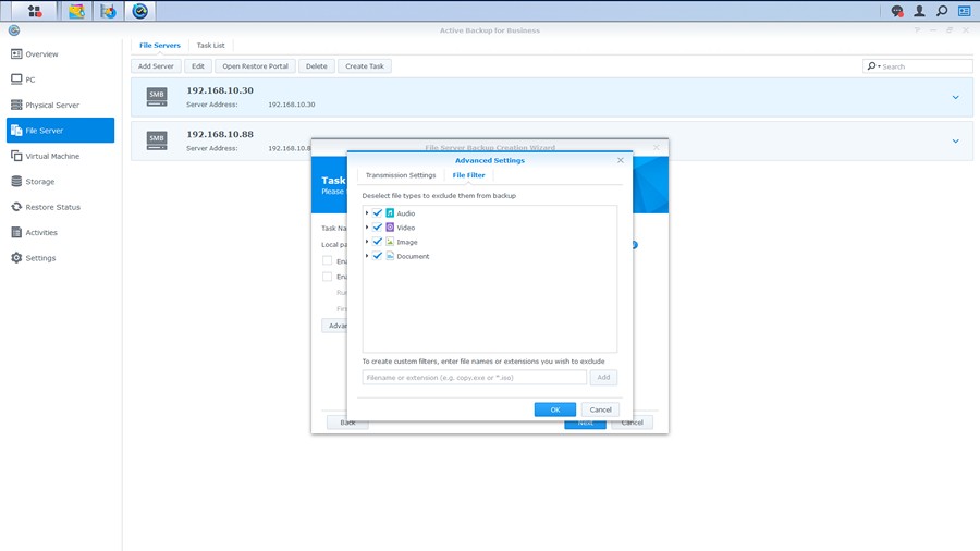 FItur yang tidak kalah pentingnya yang ditawarkan juga oleh Active Backup for Business adalah backup untuk file server. Banyak perusahaan yang menggunakan file server untuk mendukung berbagai kebutuhan mereka dan bila terjadi gangguan tentunya akan merepotkan. File server berbasis Windows yang mendukung protokol SMB dan file server yang mendukung rsync bisa di-backup ke NAS Synology dengan mudah.