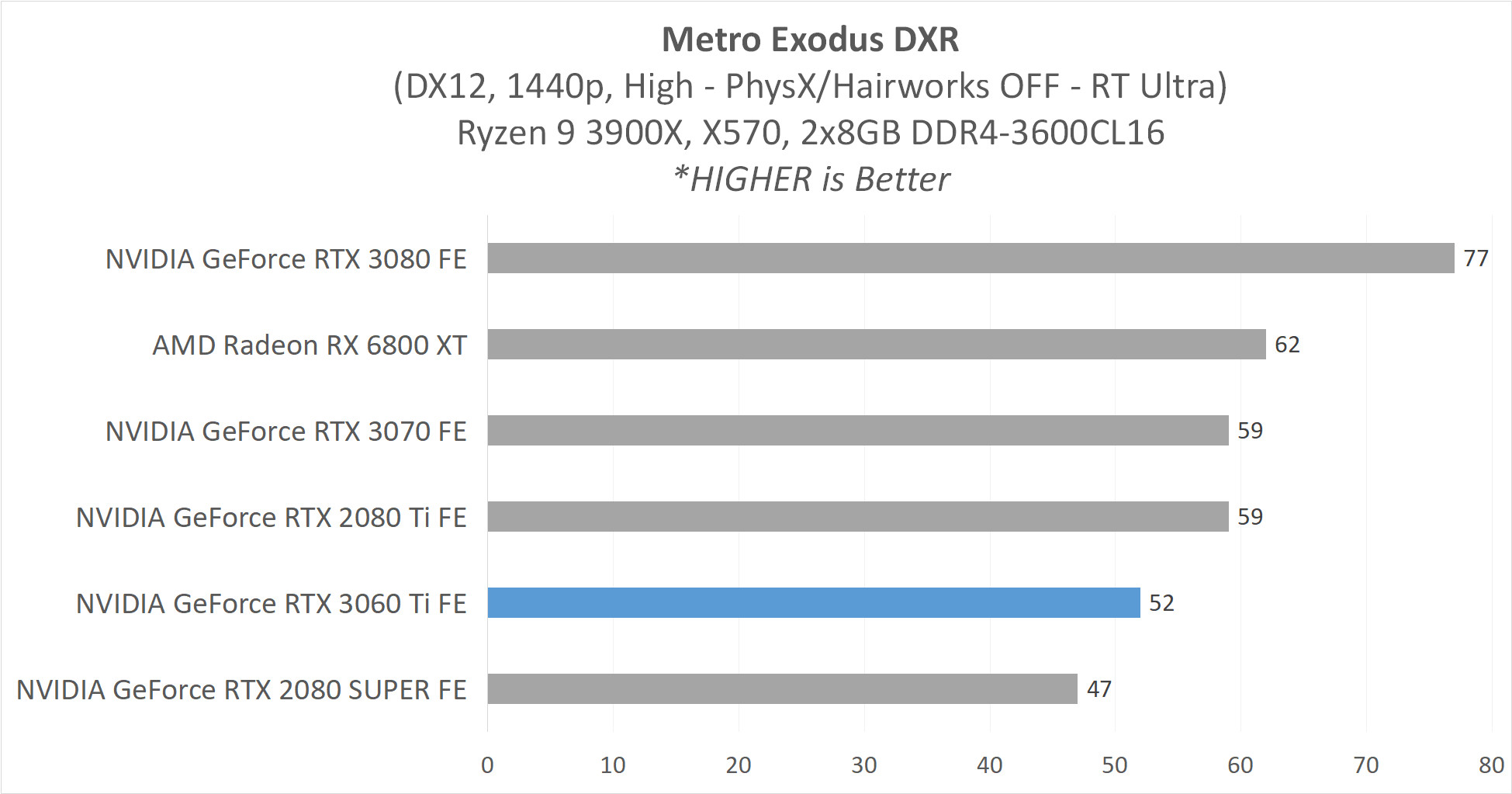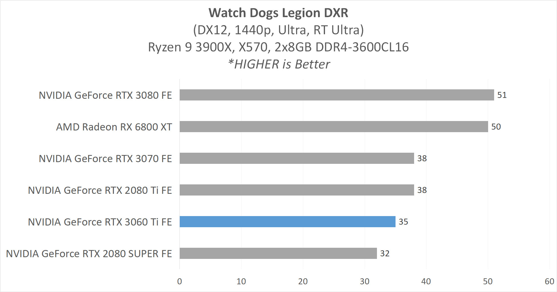 Walaupun memiliki shader unit dengan jumlah paling rendah dari semua GPU Ampere yang hadir(saat ini), performa RTX 3060 Ti bisa dibilang mengagumkan. GPU kelas tengah ini masih memiliki performa di atas RTX 2080 SUPER pada hampir semua game test kami, terutama sekali pada skenario resolusi 1440p dengan Ray Tracing (DirectX Ray Tracing – DXR) aktif. RTX 3070 di atas-nya, memiliki keunggulan sekitar 10-14% dari RTX 3060 Ti.