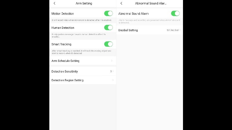 - Fitur push notification bisa diaktifkan untuk memberitahu bila kamera mendeteksi ada objek bergerak atau suara abnormal, misalnya saat kita tengah tidak berada di area yang dipantau. Fitur ini bisa diaktifkan secara manual atau menggunakan fitur schedule di aplikasi