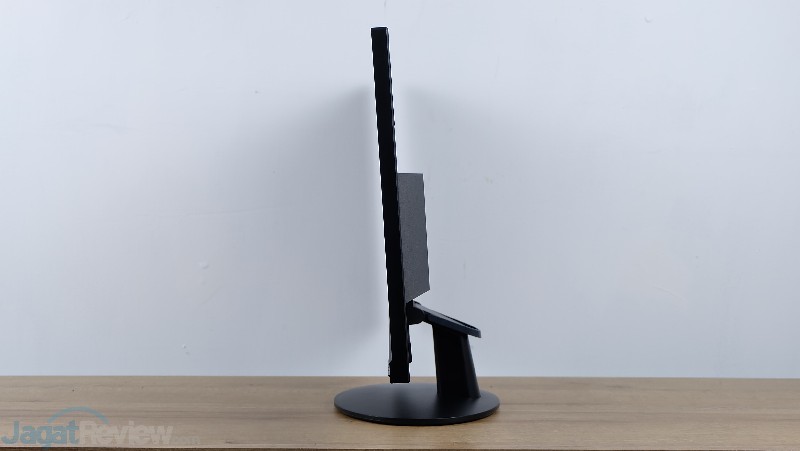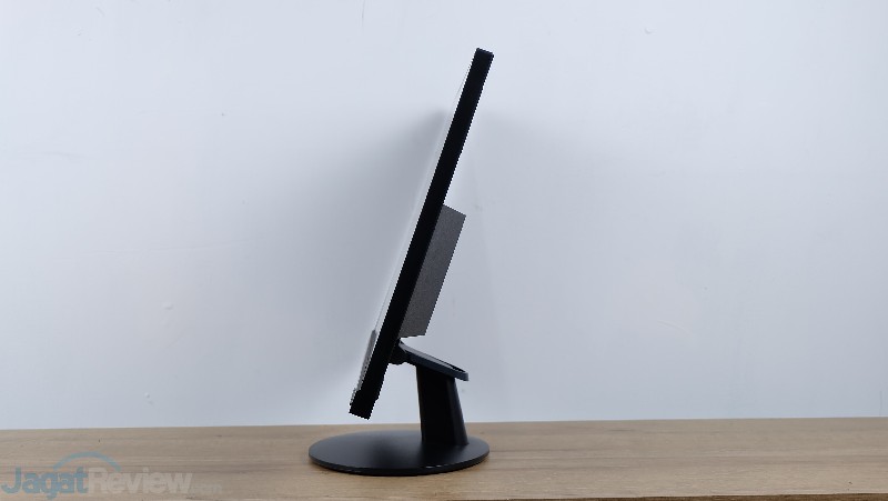 Sedangkan untuk pengaturan posisi layarnya, monitor ini hanya mengizinkan Tilt: yaitu dengan sudut menunduk -4° dan menengadah 22°. Pengguna tidak bisa mengatur kemiringan layar ke sudut kiri maupun kanan.