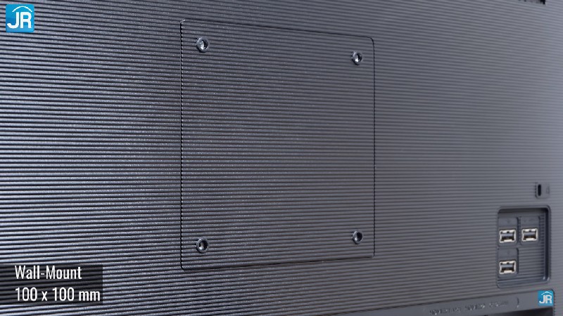 Di bagian belakang monitor juga ada lubang untuk wall mount, dengan ukuran 100 x 100 mm. Tak hanya itu, monitor ini juga sudah dilengkapi dengan speaker stereo (2x 5 Watt) yang ada di sisi bagian bawah.