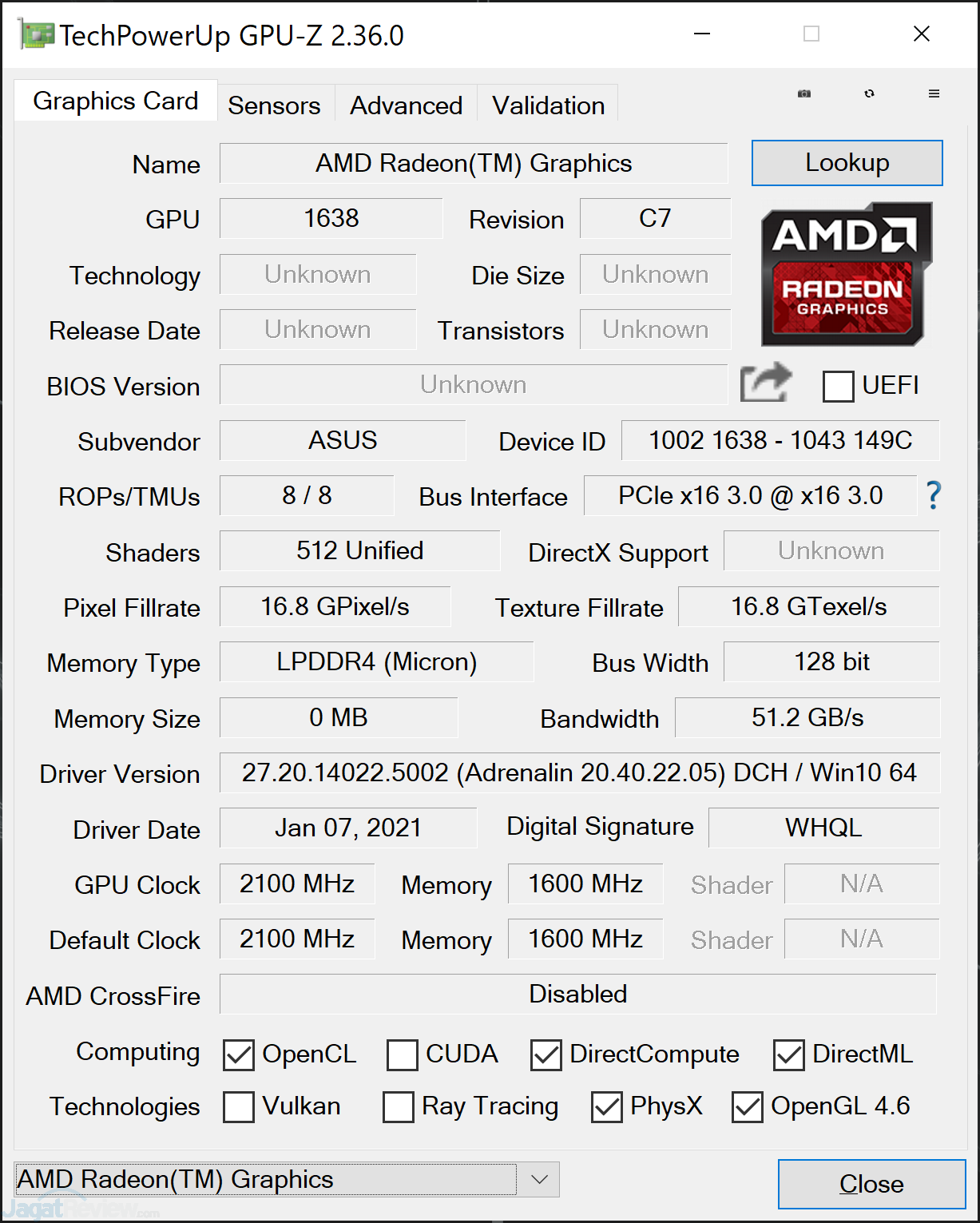 GPU pertama yang ditemui pada notebook ini tentunya adalah GPU terintegrasi (IGP) pada SoC/Prosesor-nya, yakni AMD Radeon Vega 8.